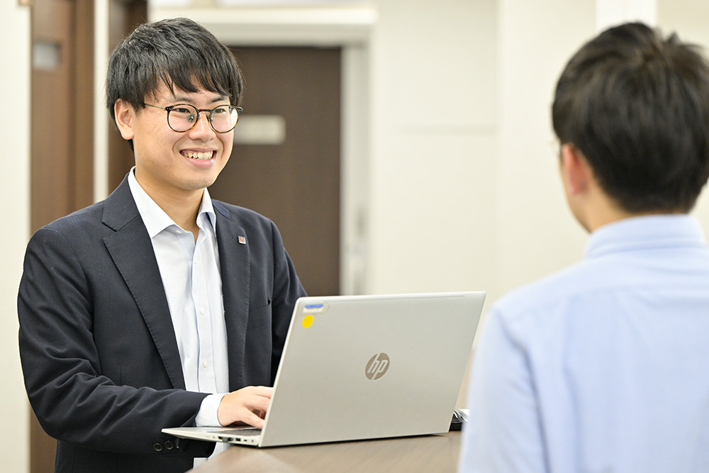 学習塾でアルバイトをしていたものの、TOMASのことは就活を始めるまで知りませんでした。この世に完全1対1の進学個別指導塾があると知ったときは、本当に驚きましたね(笑)。その後、インターンシップに参加して講師体験をしたのですが、それが本当に楽しくて、インターン後すぐにエントリーシートを提出しました。何より、授業時間のすべてを一人の生徒に使うことができるという点に感銘を受けましたね。 -