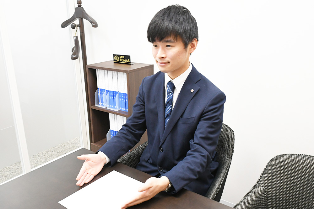 - 大学時代、1対2の個別指導塾で講師として働く中で、一人ひとり平等に指導する難しさを痛感。完全1対1の進学個別指導という指導形態に惹かれ、TOMASへ入社。
